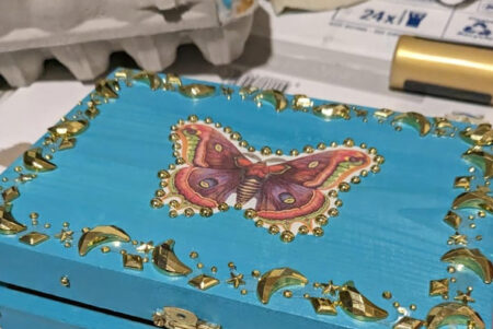 Decoupage is the art of decorating surfaces by gluing cut-out paper designs onto objects and sealing them with layers of varnish or Mod Podge. It can transform everyday items like boxes, furniture, and glassware into personalized works of art. With endless design possibilities, decoupage is a simple yet elegant craft that allows creators to express their style through color, pattern, and texture.